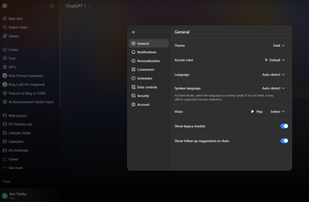 Once you’re in Settings, look for the General tab. Scroll down until you see “Show legacy models” and toggle it ON.